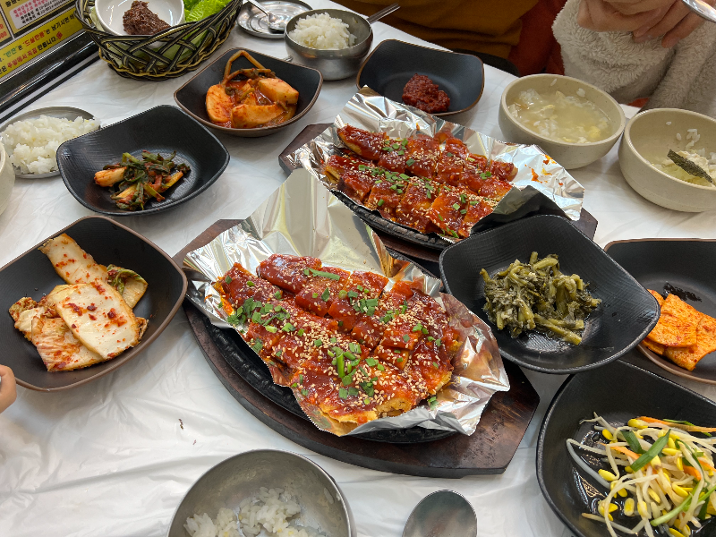 쌈배추에 황태구이랑 밥식혜 같은 거 같이 올려서 먹으면 진짜 맜었어요!