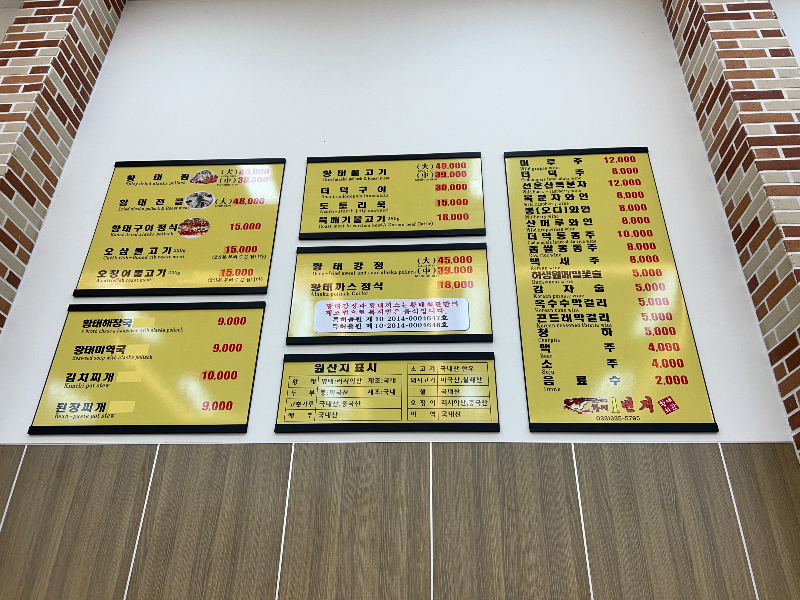 테이블에 자리를 잡고 나서 황태구이 정식 2개를 주문했다.