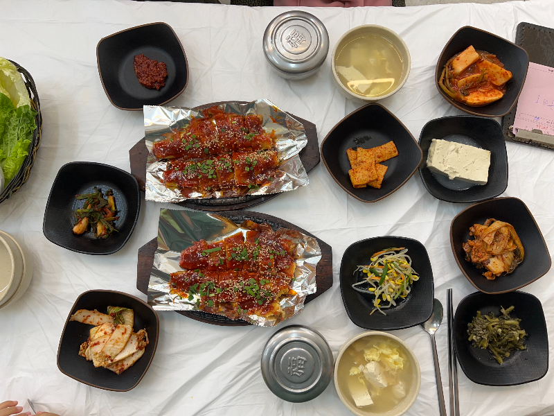두부랑 쌈배추 빼고는 모두 셀프바에 있어서 두 번이나 더 가져다 먹었다.