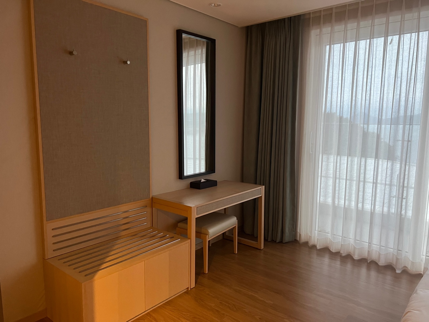 커튼 뒤 테라스로 보이는 바다전망을 따로 못 찍었네요.