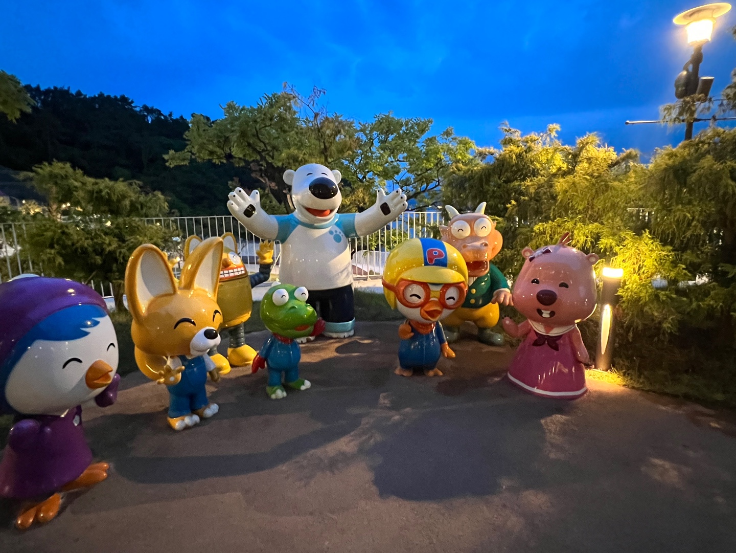 저녁 먹기 전에 아이들과 뽀로로 가든을 구경하며 잠시 산책했어요.