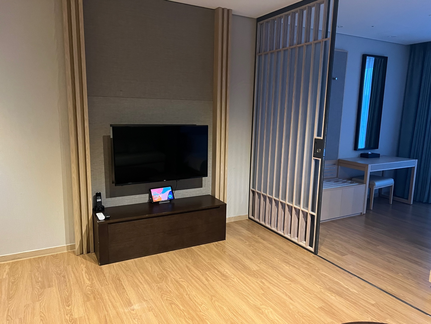 센스 있다 생각했던 게 바로 우드톤의 미닫이 문.