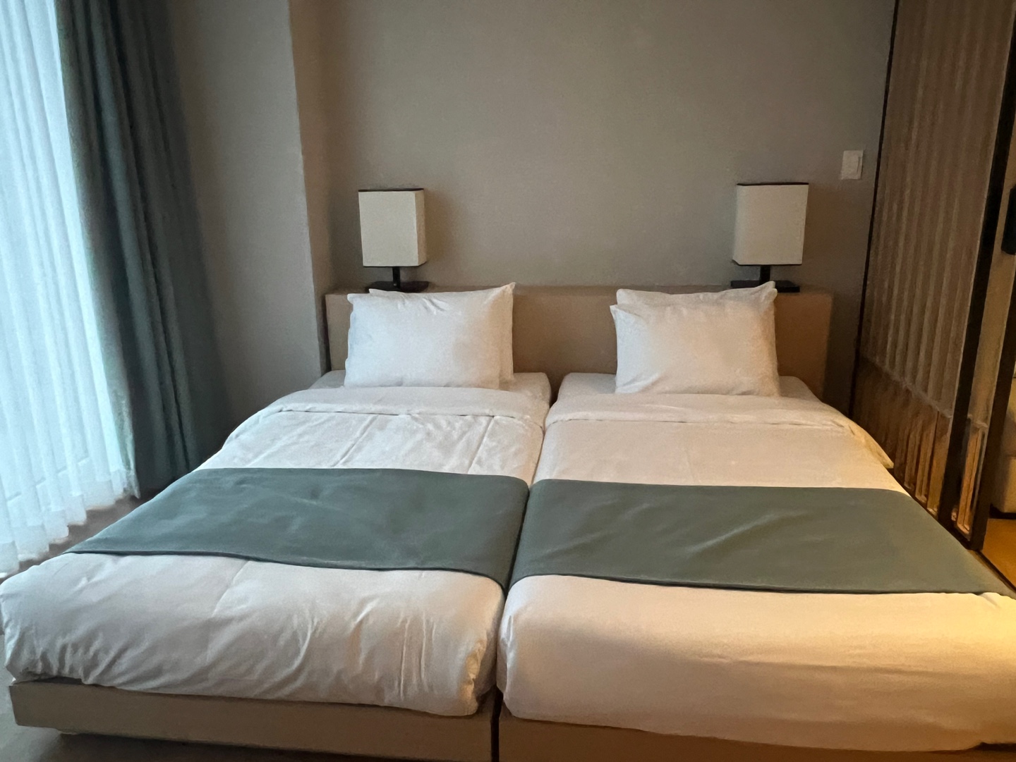 하지만 싱글침대 2개가 붙어있어 4명이서 모두 자기에는 좀 좁았어요.