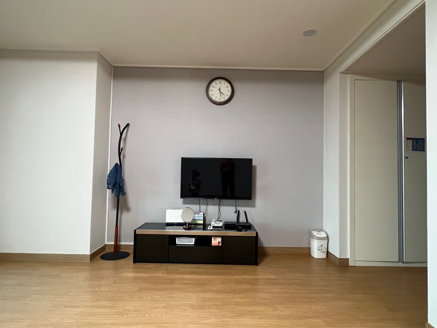 넓은 방이 무색할 만큼 텔레비전은 크기가 작네요. 하하