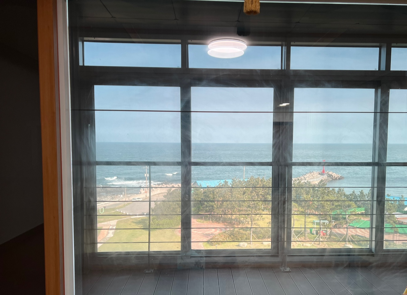 넓은 창밖으로 바다가 보여서 더 트여있는 것 같았어요.