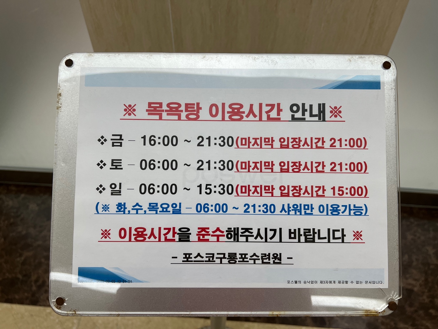 평일인 화, 수, 목은 샤워만 이용가능해요.