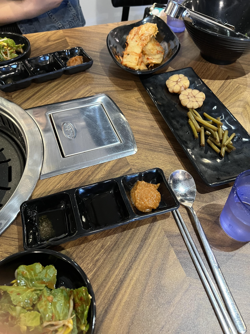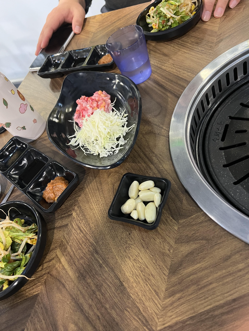 두툼한 고기맛에 정신없이 먹는다고 다 구워진 고기 사진은 못 찍었어요.