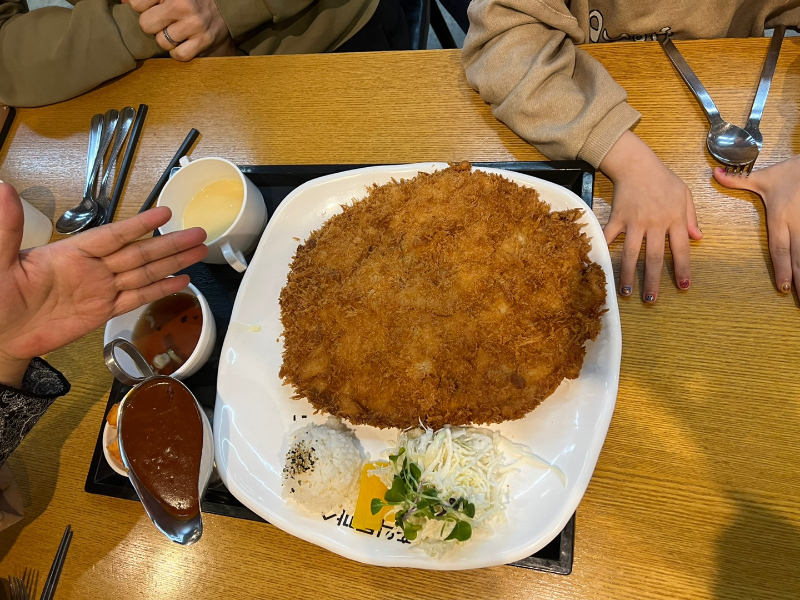 사실 돈가스 크기가 엄청 커서 둘이서 돈까스 하나만 시켜도 실컷 먹을수 있는데 인당 1메뉴를 시켜야되서 우동을 같이 주문했어요.