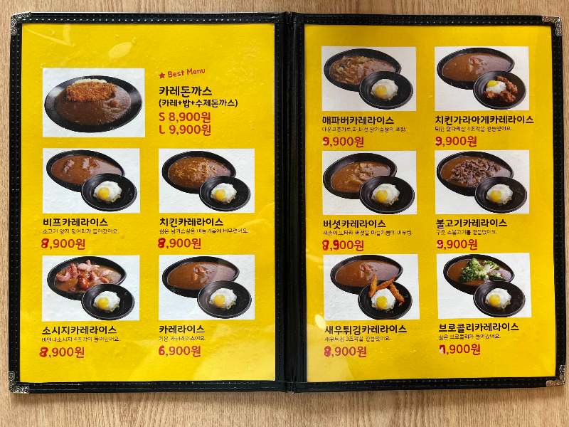 저는 카레 돈가스(8.900원), 비프 카레라이스(8.900), 버섯 카레라이스(8.900원)를 주문했어요.