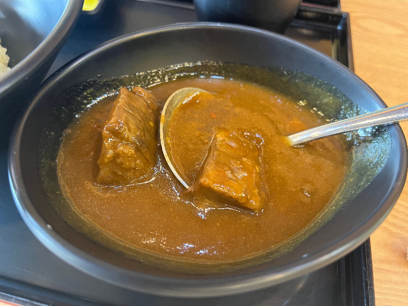 소고기 양지 덩어리가 들어있는 비프 카레라이스.