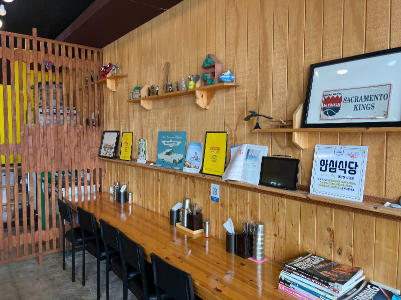 식당 안으로 들어가자마자 오픈주방과 안심식당 표지판이 눈에 들어왔어요.