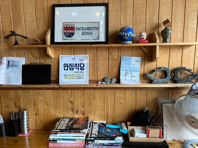 작은 소품과 잡지책으로 인테리어를 해놨는데 찬찬히 보는 재미도 있었어요.