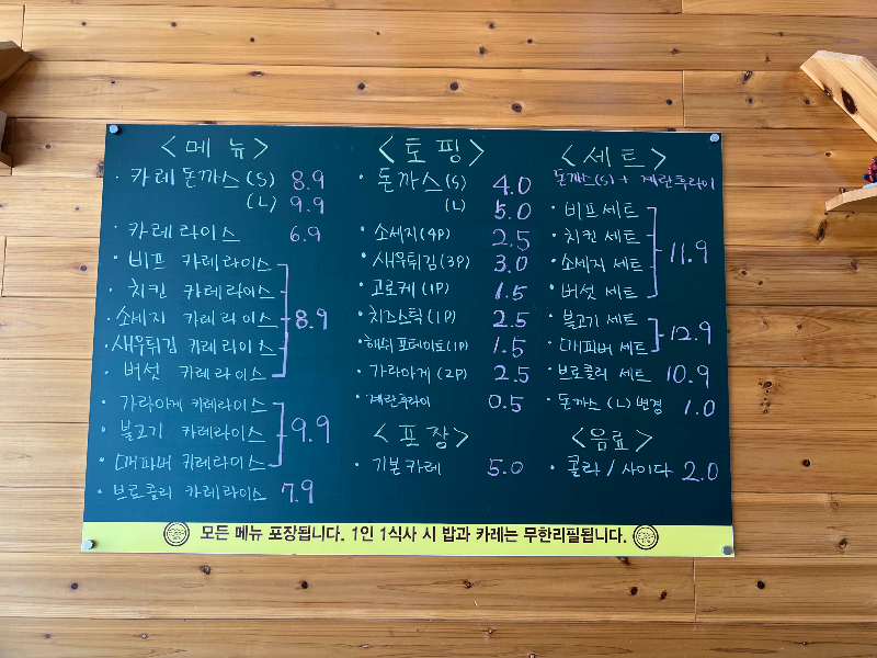 1인 1 식사 시 밥과 카레가 무한리필 된다는 점 참고하세요.