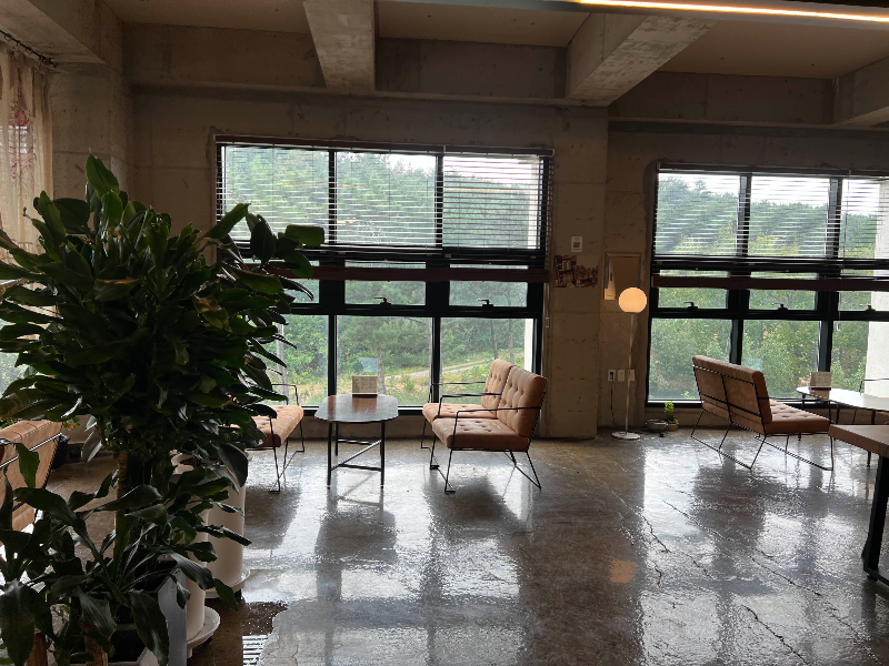 세련되고 널찍한 테이블과 창너머로 푸른 풍경이 개방감을 더해주네요.