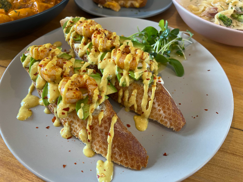 쉬림프 아보카도 샌드위치는 탱글탱글한 큰 새우에 생아보카도와 특제 머스터드 소스가 잘 어우러진 이층 공원 시그니쳐 메뉴.