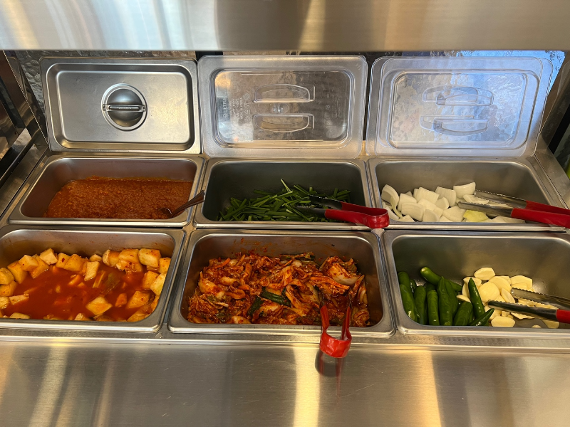 그 깍두기를 포함해서 밑반찬이 모두 셀프바에 있어요.