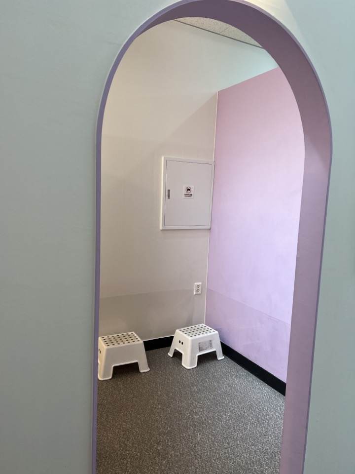 키 작은 아이들을 위해서 발 받침대도 준비되어 있어요.