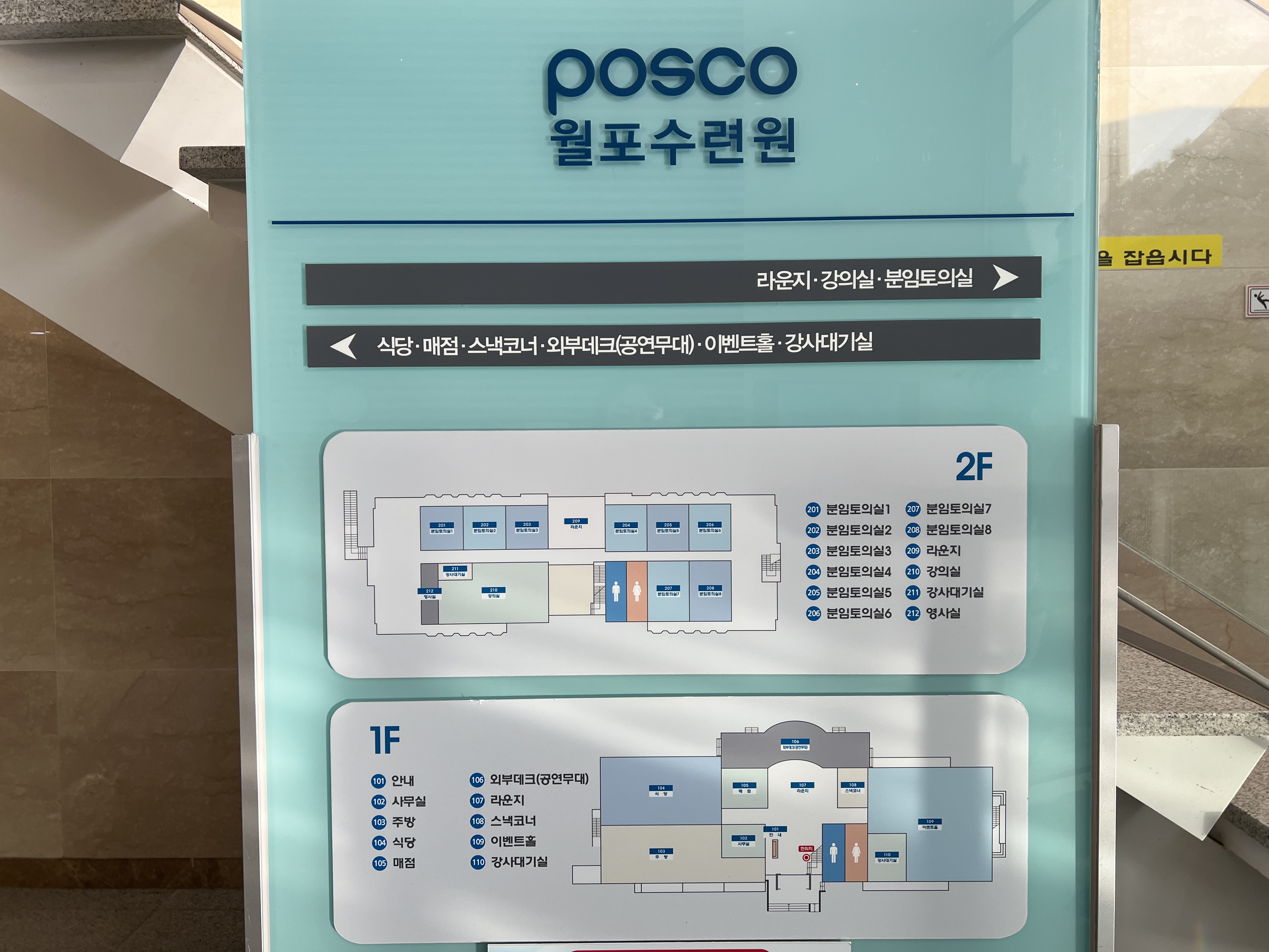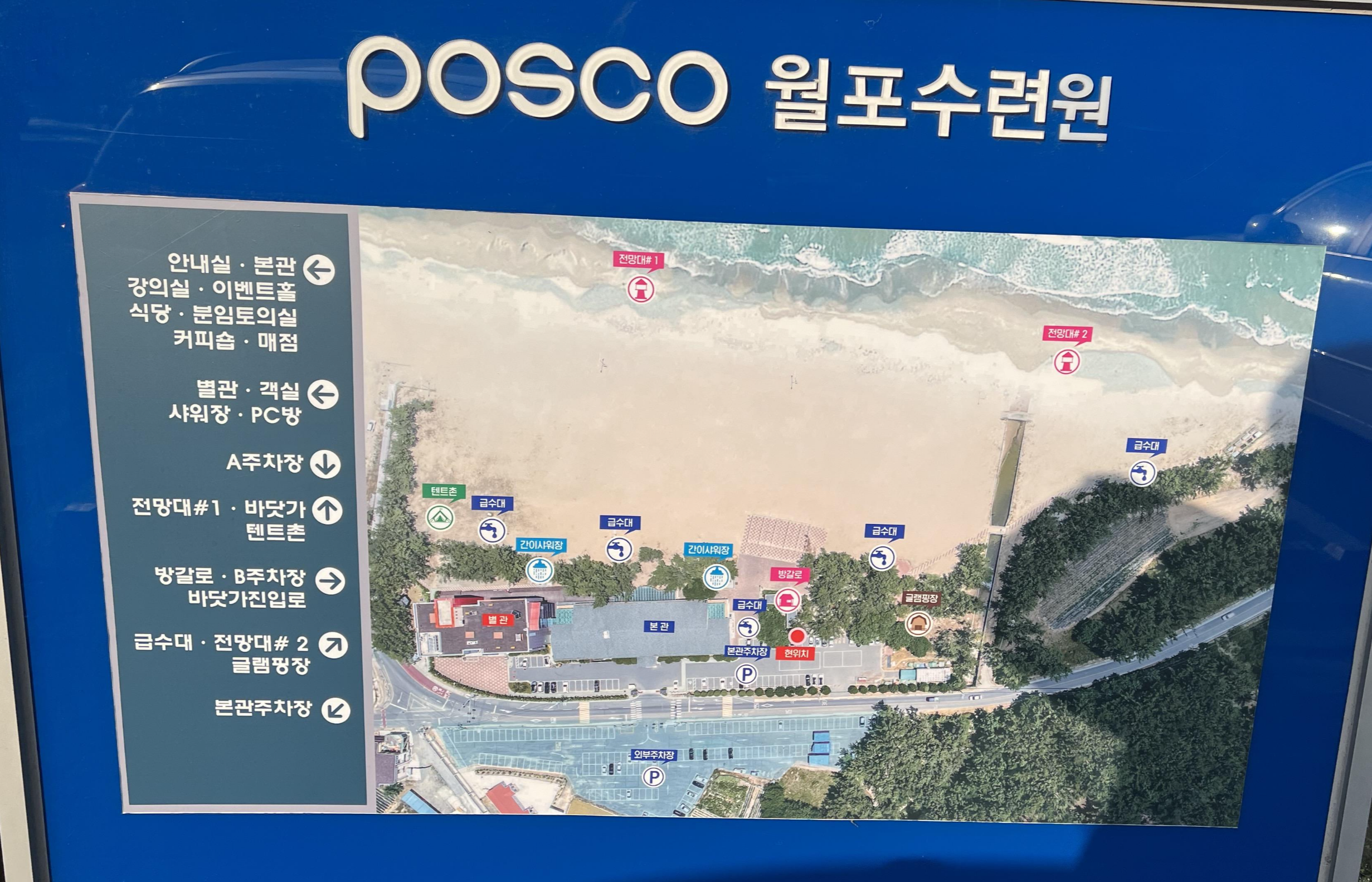 월포 수련원 안내지도 같은 커다란 표지판이 밖에 있어 찍어보았어요.