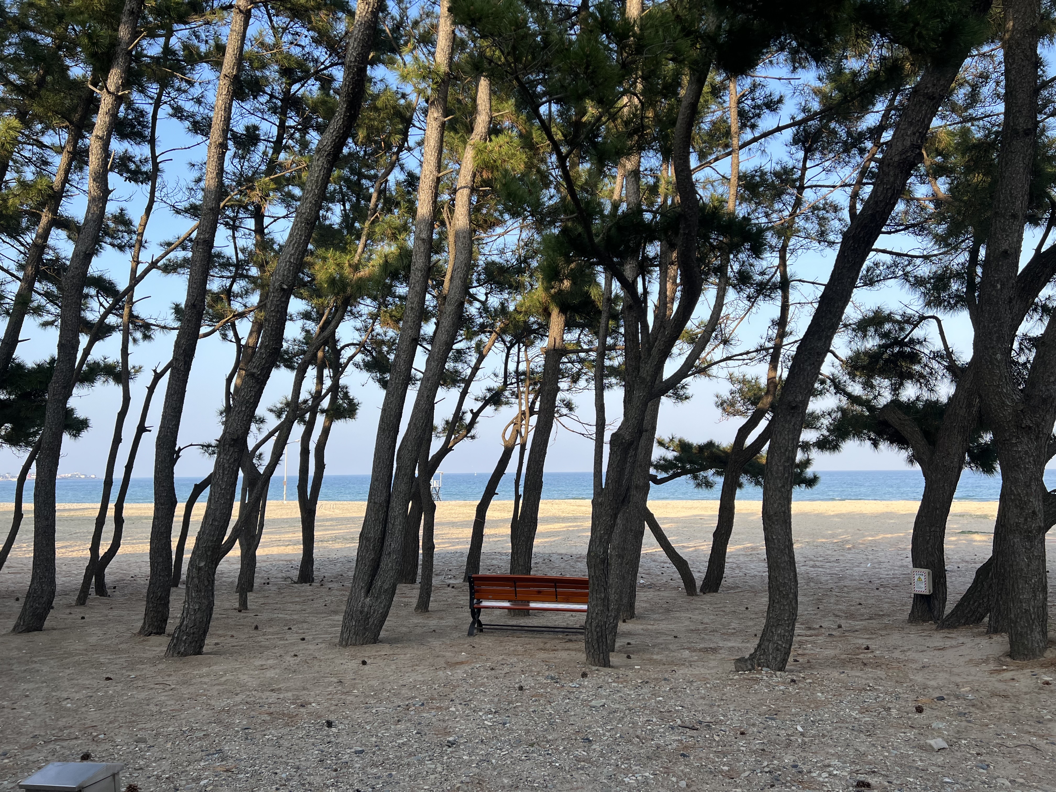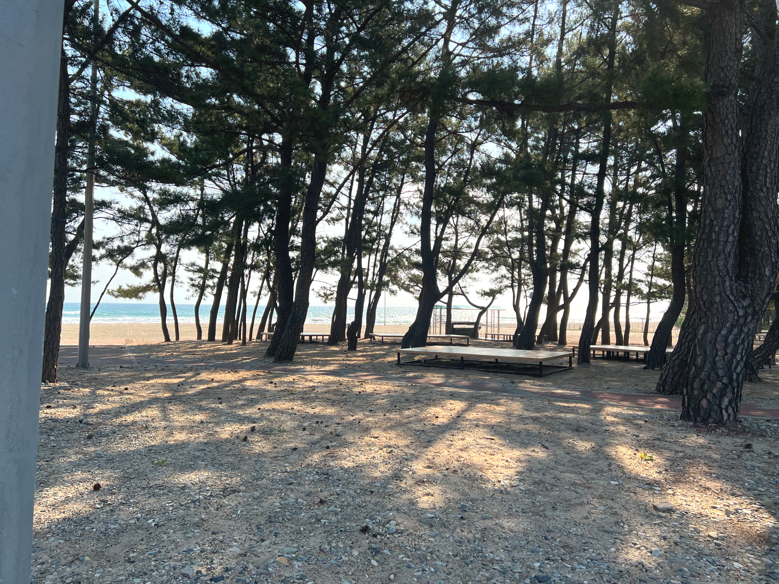 모래사장이 아주 넓게 펼쳐져 있는 해수욕장이 있는데 여기는 포스코 수련원 이용하는 사람들만 갈 수 있는 해수욕장이에요.