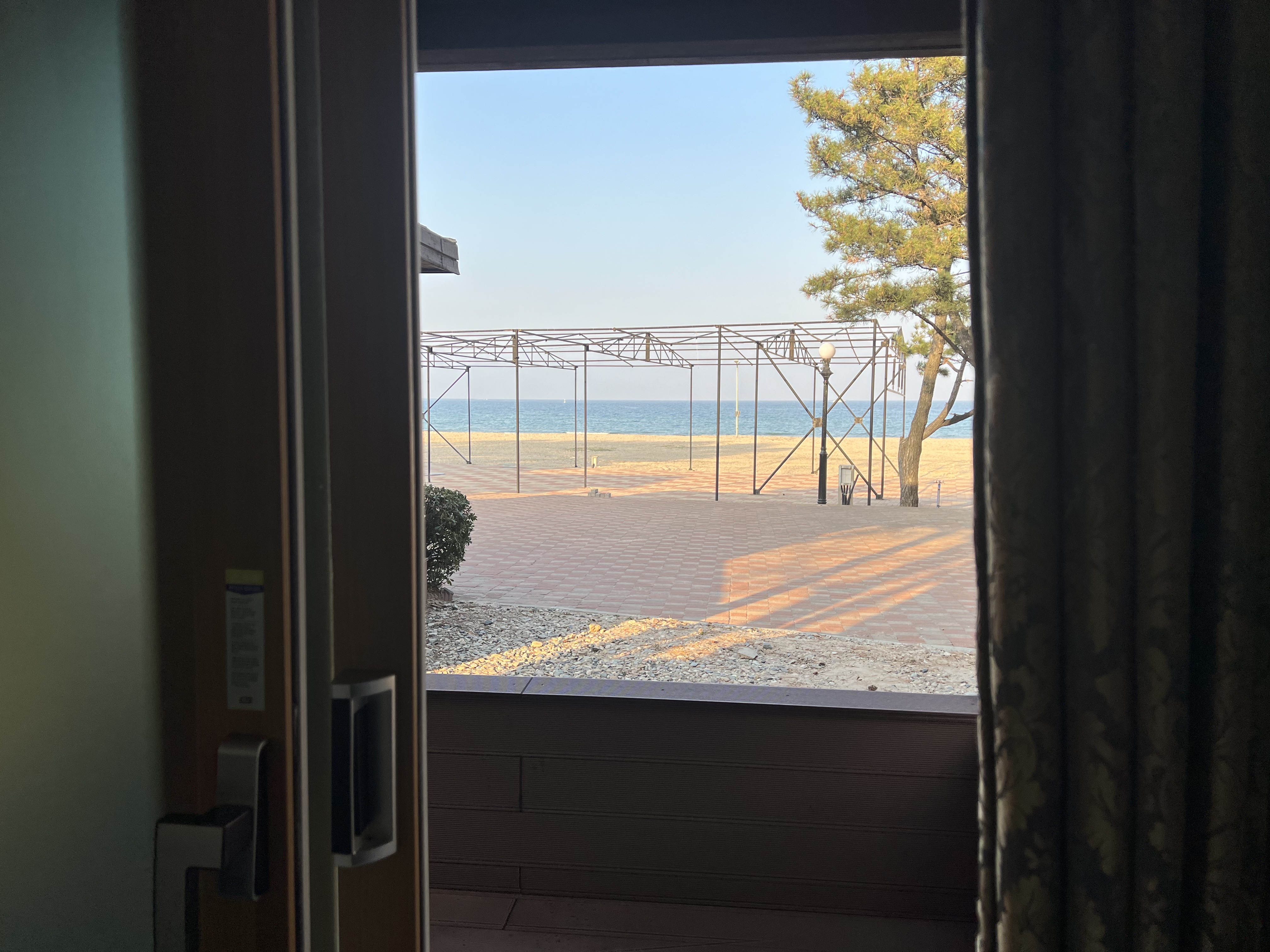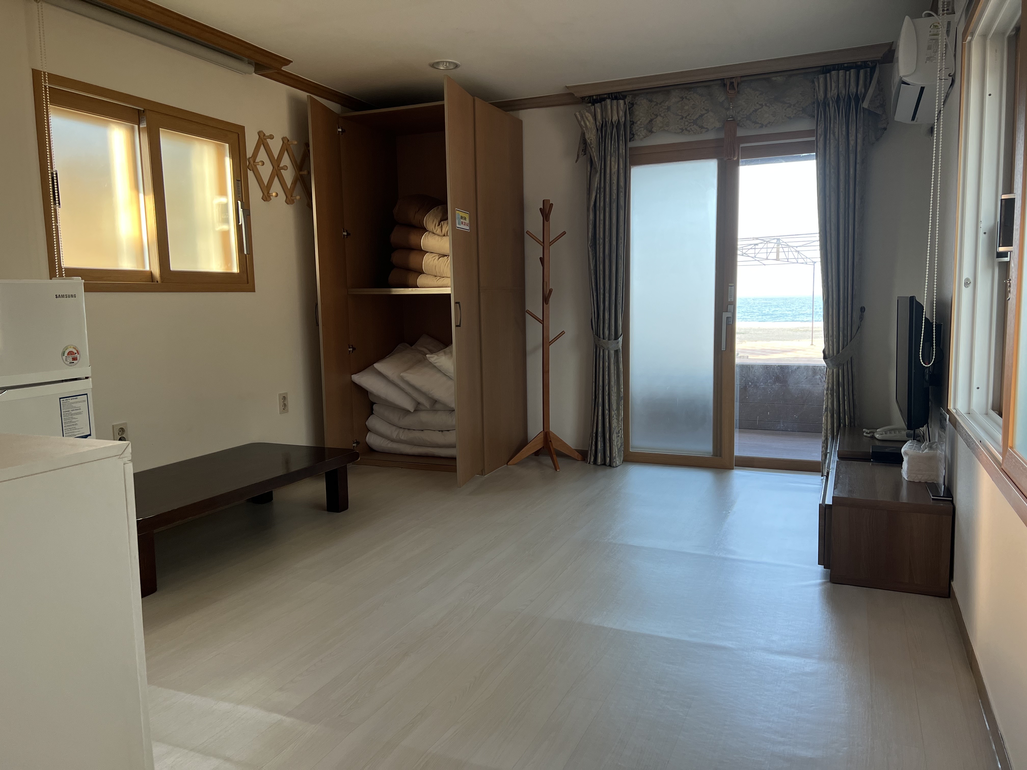 테라스 쪽으로 나올 수 있는 문이 있는데 이 문으로 바다가 바로 보여요.