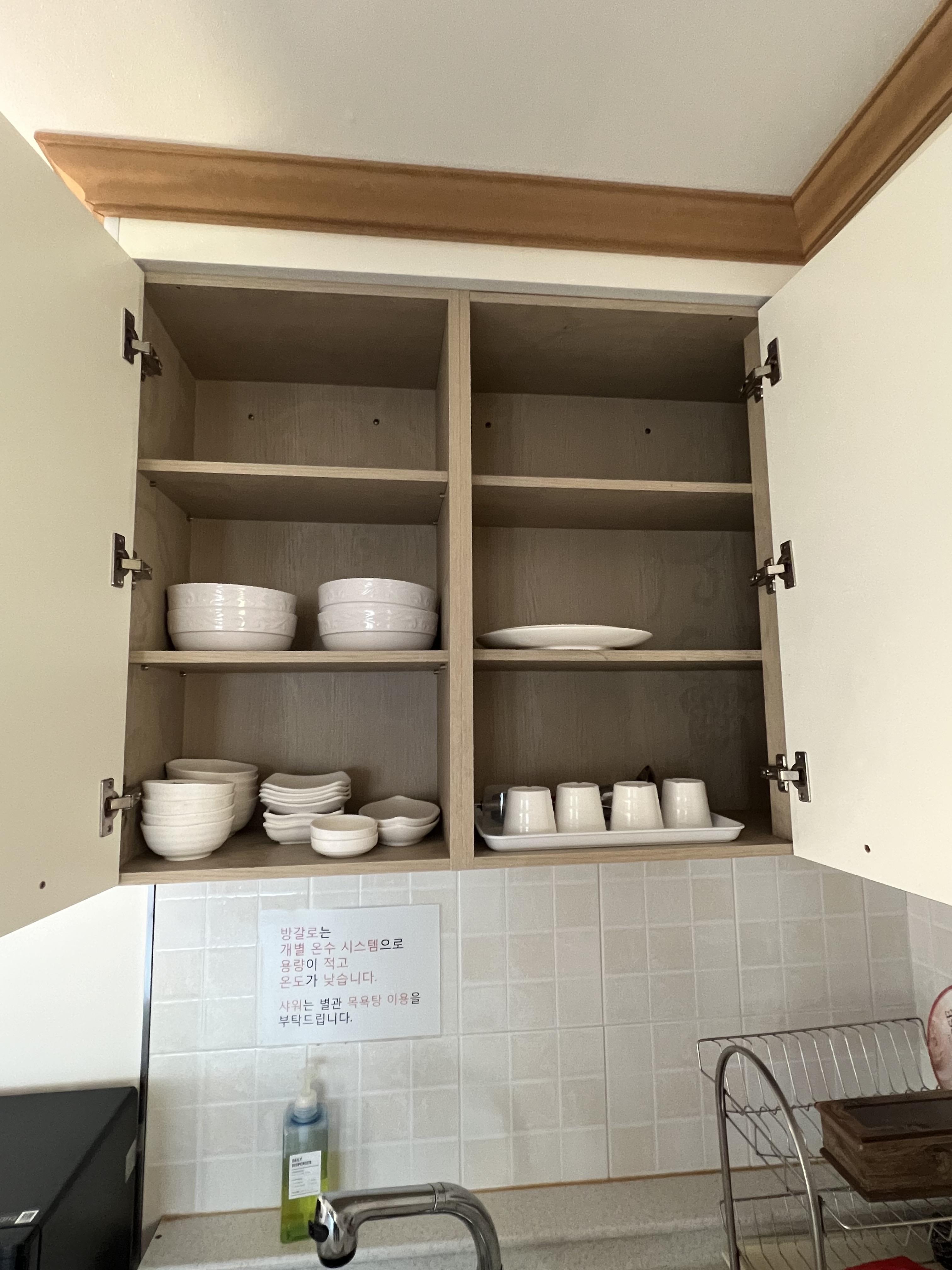 그릇, 접시, 냄비, 집기류 등이 있고 전기밥솥과 전기레인지가 있어요.