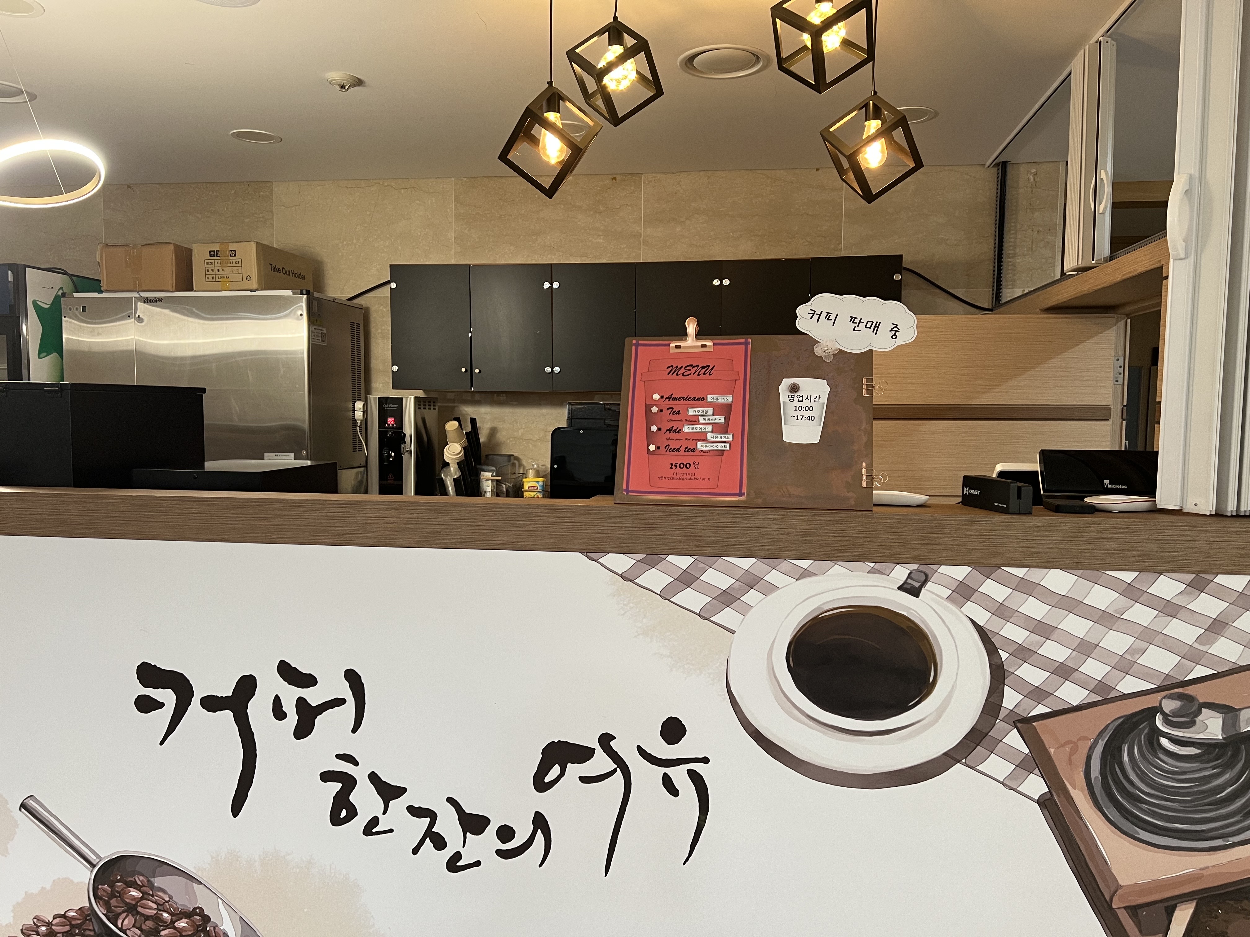 본관에 식당이 있고 바로 맞은편에 커피도 판매하는 작은 카페가 있어요.