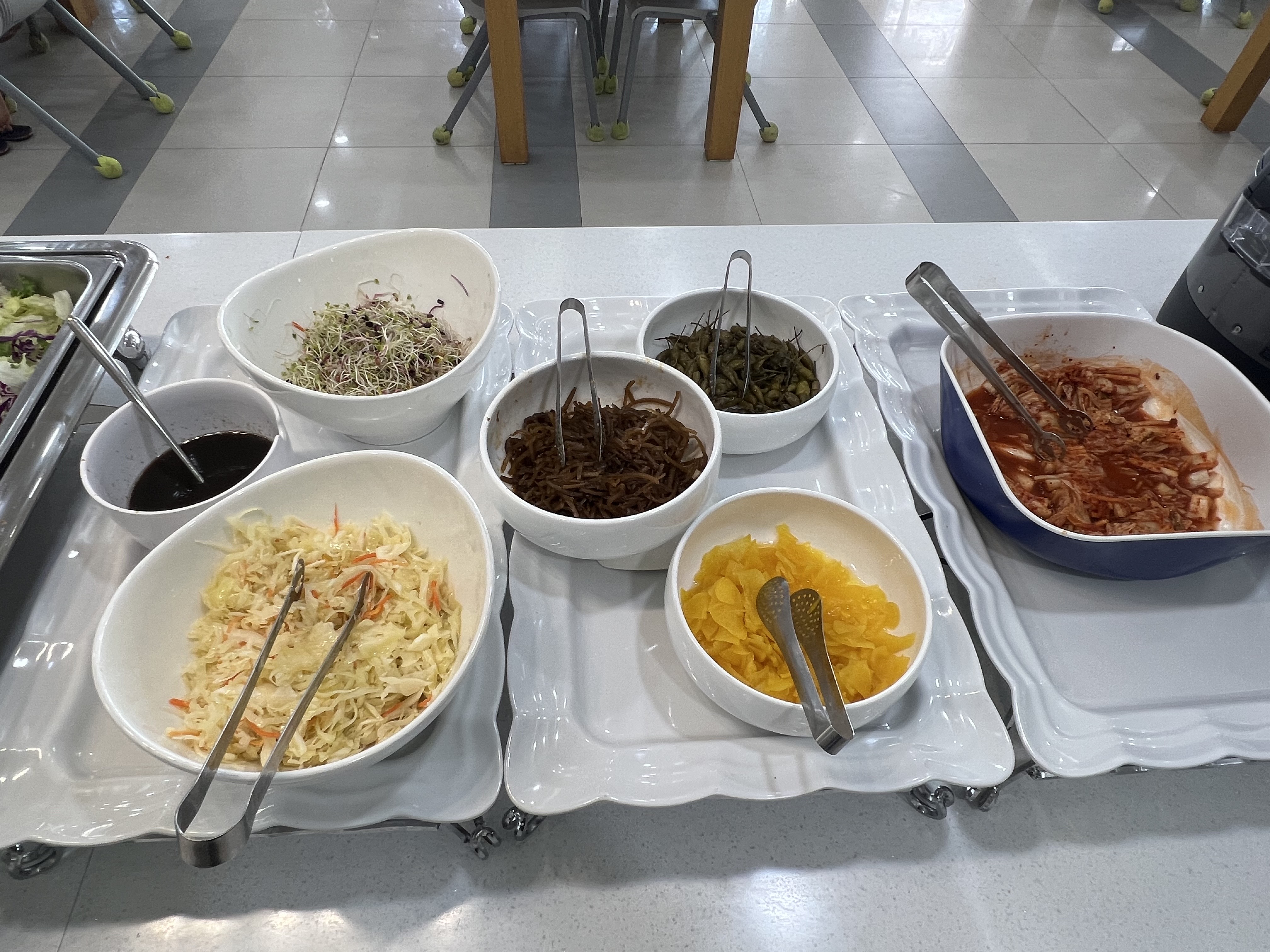울진 백암 수련원은 한상 차림으로 나왔는데 월포는 뷔페식으로 본인이 각자 먹을 만큼 담아 오면 돼요.