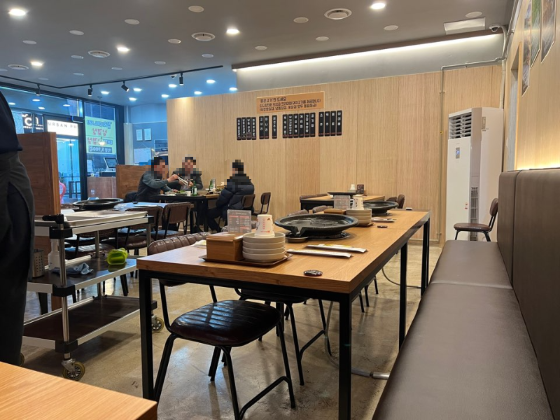 고깃집인데 테이블 위로 주렁주렁 달린 환풍기구가 안 보이죠?