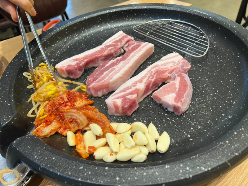 삼겹살이 아주 신선했고 지방과 고기의 비율이 적당했어요.