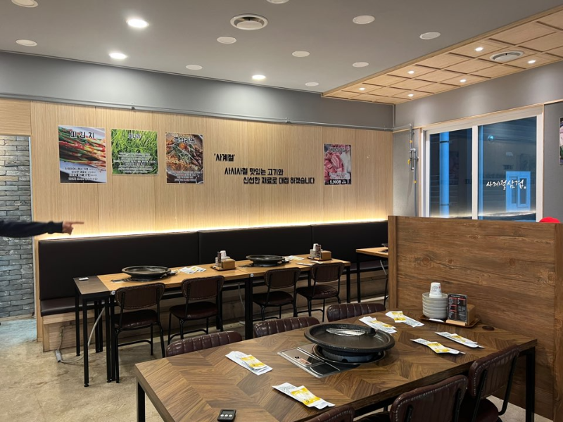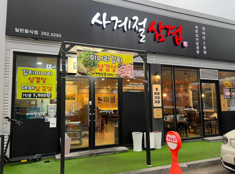 사계절 내내 맛있는 고기를 먹을 수 있는 사계절 삼겹 가게 외부예요.
