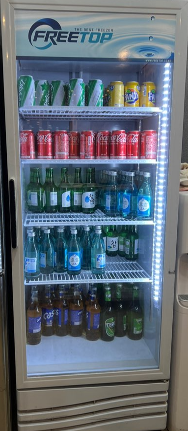 배불리 먹고 나오면서 고기냉장고와 음료냉장고를 한번 찍어보았어요.