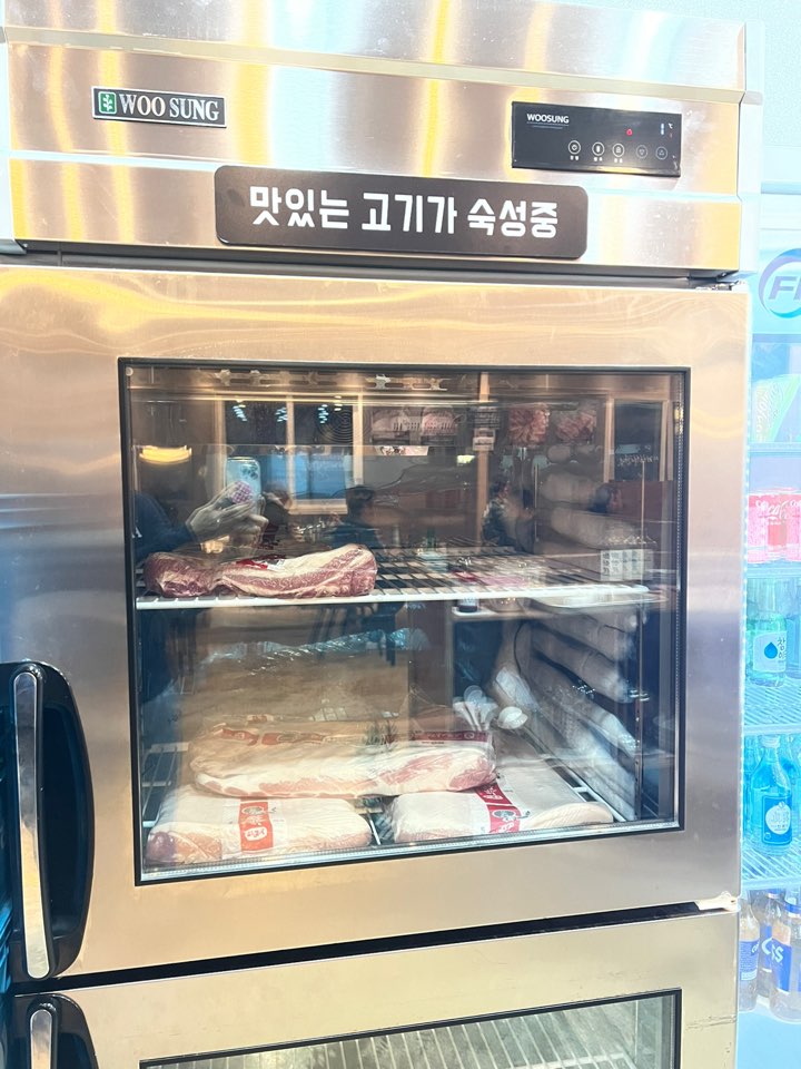 맛있는 고기가 냉장고에서 잘 숙성 중이네요.