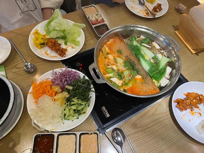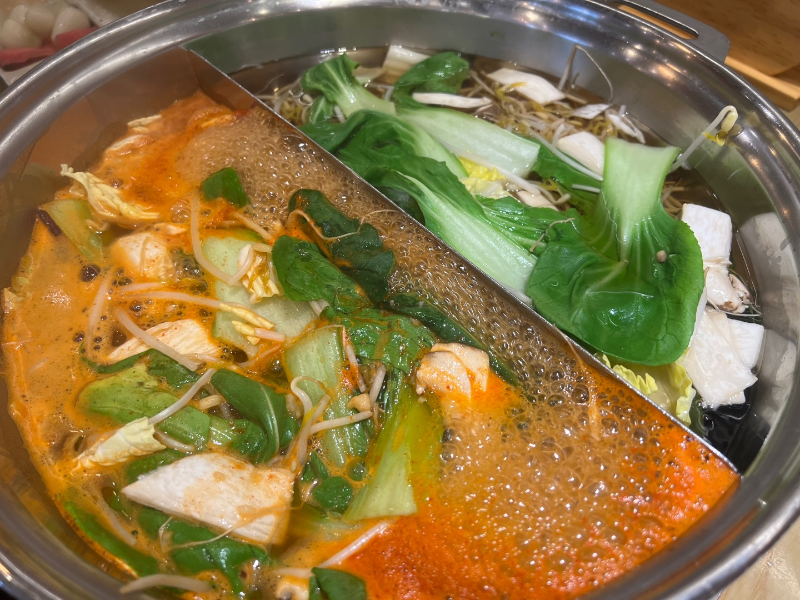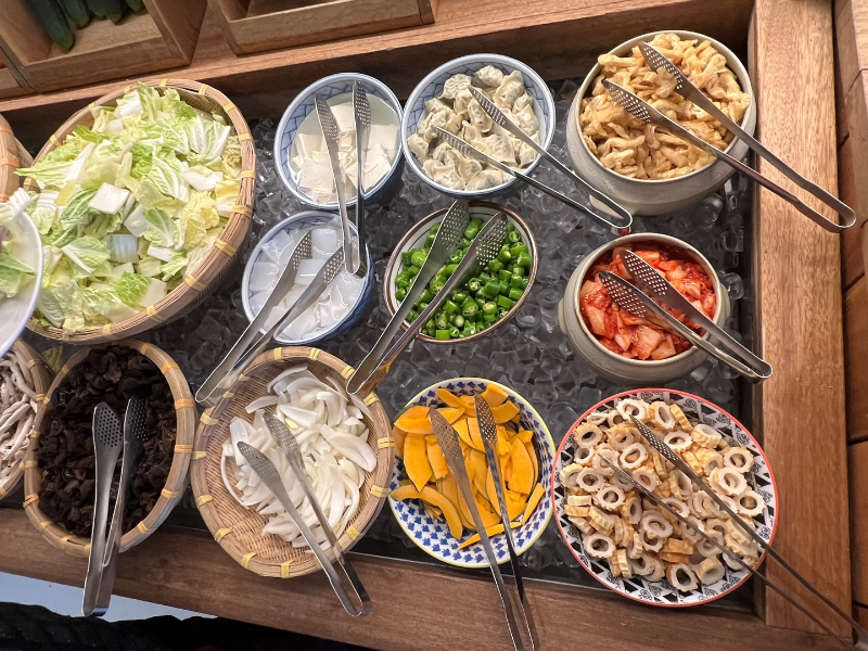 청경채, 숙주, 배추, 여러 가지 버섯들, 단호박, 두부, 만두, 유부, 어묵 등등..
