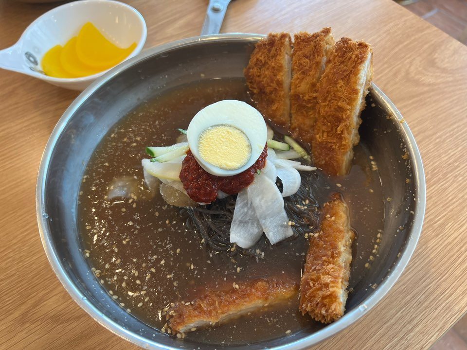 적당한 크기의 돈가스와 시원한 물냉면의 조화가 정말 맛있어요.
