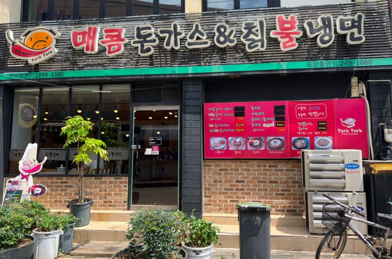 바로 포항 시내 안에 있는 매콤 돈가스&칡불냉면.