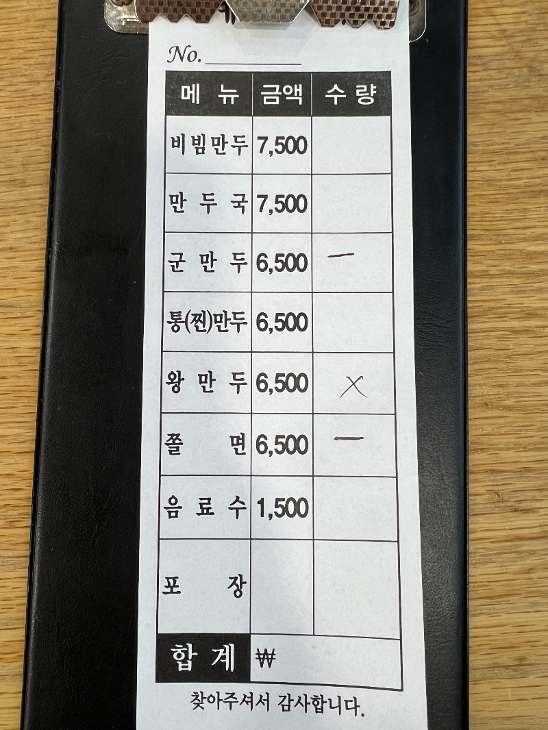 왕만두는 재료소진인 건지 주문 안 된다고 X표시가 쳐져있었어요.