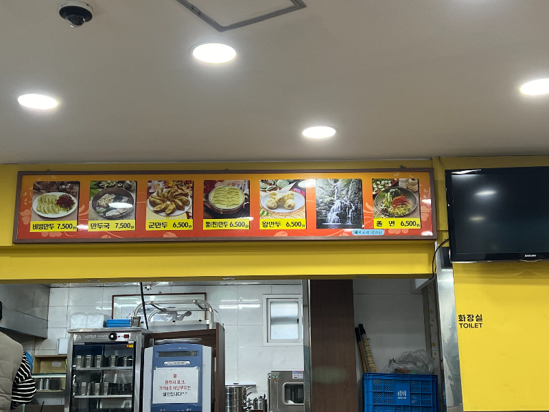 비빔만두, 만둣국, 군만두, 찐만두, 왕만두, 쫄면이 있어요.