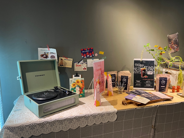 한쪽 공간에는 감성 가득한 LP판과 엽서 등으로 예쁘게 꾸며져 있어요.