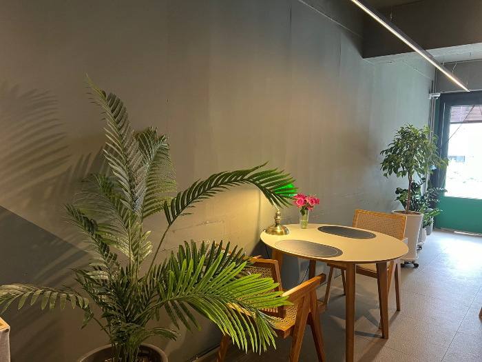 초록색 문을 열고 들어가니 작지만 분위기가 좋은 공간이 나타났어요.