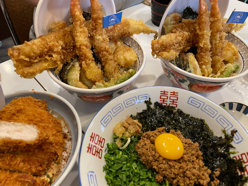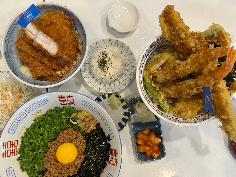 스페셜 텐동 2개, 마제소바, 로스카츠동을 주문했어요.