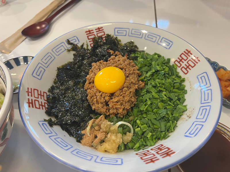마제소바 위에 올려진 달걀노른자가 반짝반짝 빛이 나네요.