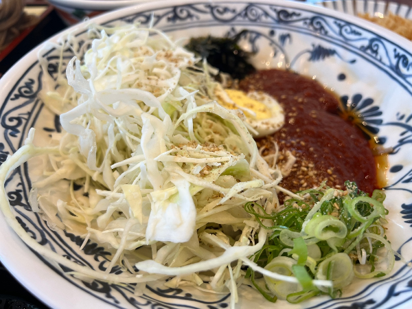 비빔소바에는 양배추가 가득 들어있어 아삭한 식감이 좋았어요.