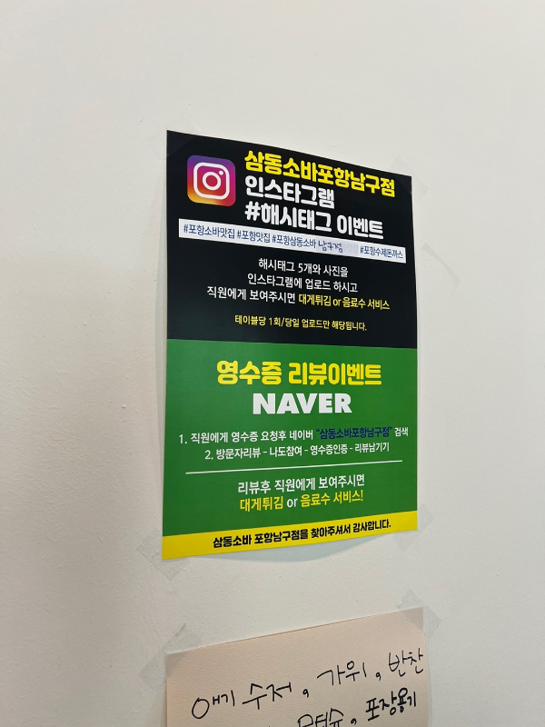 오늘은 포항 남구에 위치한 삼동소바에 다녀온 후기를 써볼게요.