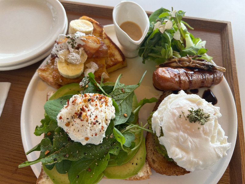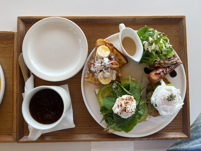 썬어게인 브런치(16.500원) 과카몰리 샌드위치, 프렌치 토스트, 아보가토 토스트, 발사믹 드레싱과 곁들인 버섯볶음과 샐러드, 소시지를 한번에 즐길 수 있어요.