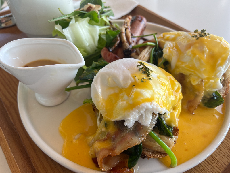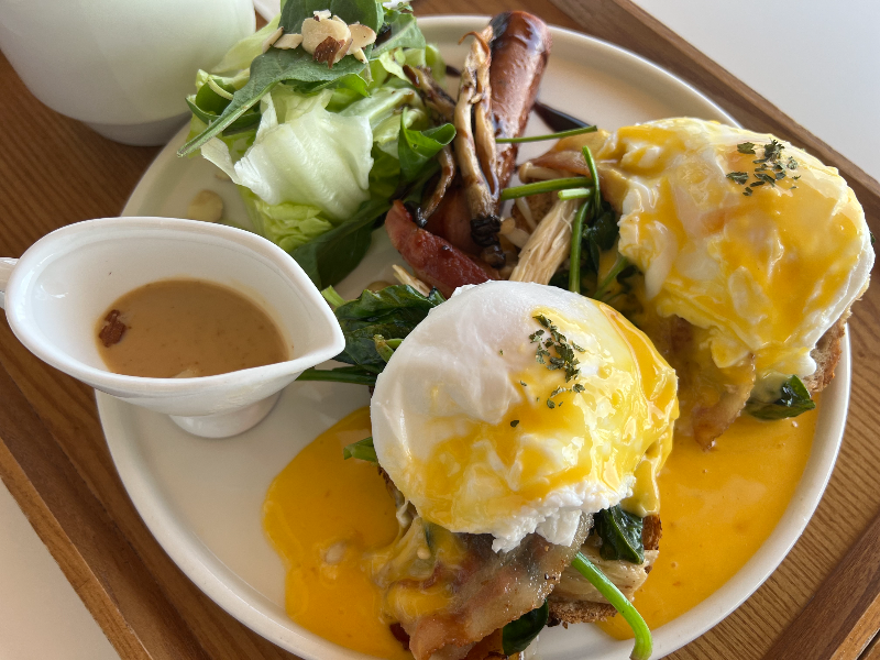 에그베네딕트 (15.000원) 루꼴라와 베이컨, 버섯이 들어있어요.