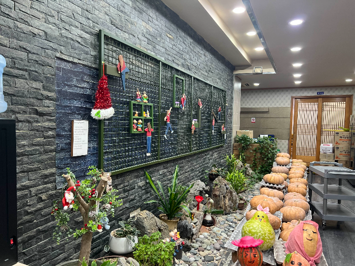 메뉴에 호박전이 있는데 노랗게 잘 익은 호박들이 옹기종기 모여있는 게 귀여워요.