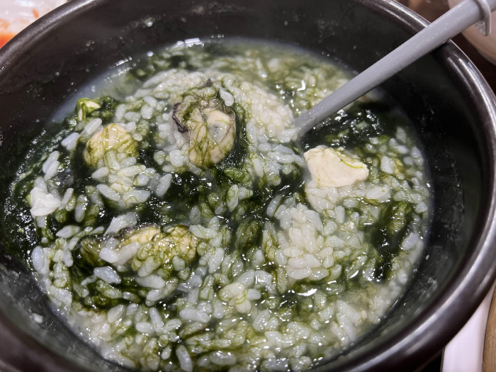 처음 한 숟갈을 뜨자마자 매생이의 부드러움과 굴의 신선한 맛이 입안 가득 퍼졌어요.