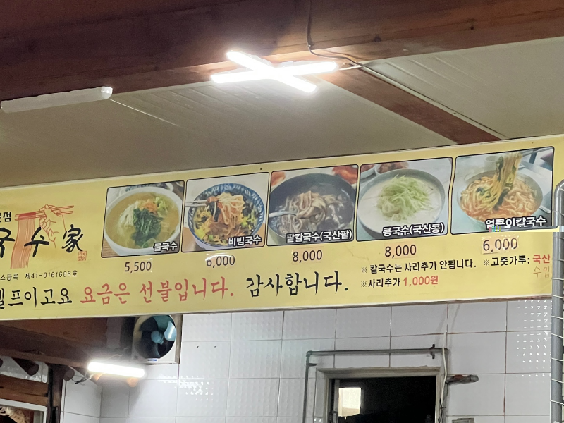 국수가 메뉴는 딱 이렇게 있어요.