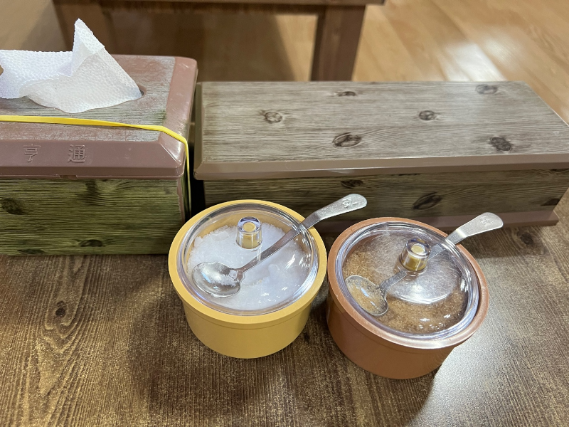 테이블마다 티슈와 수저통이 있었어요.
