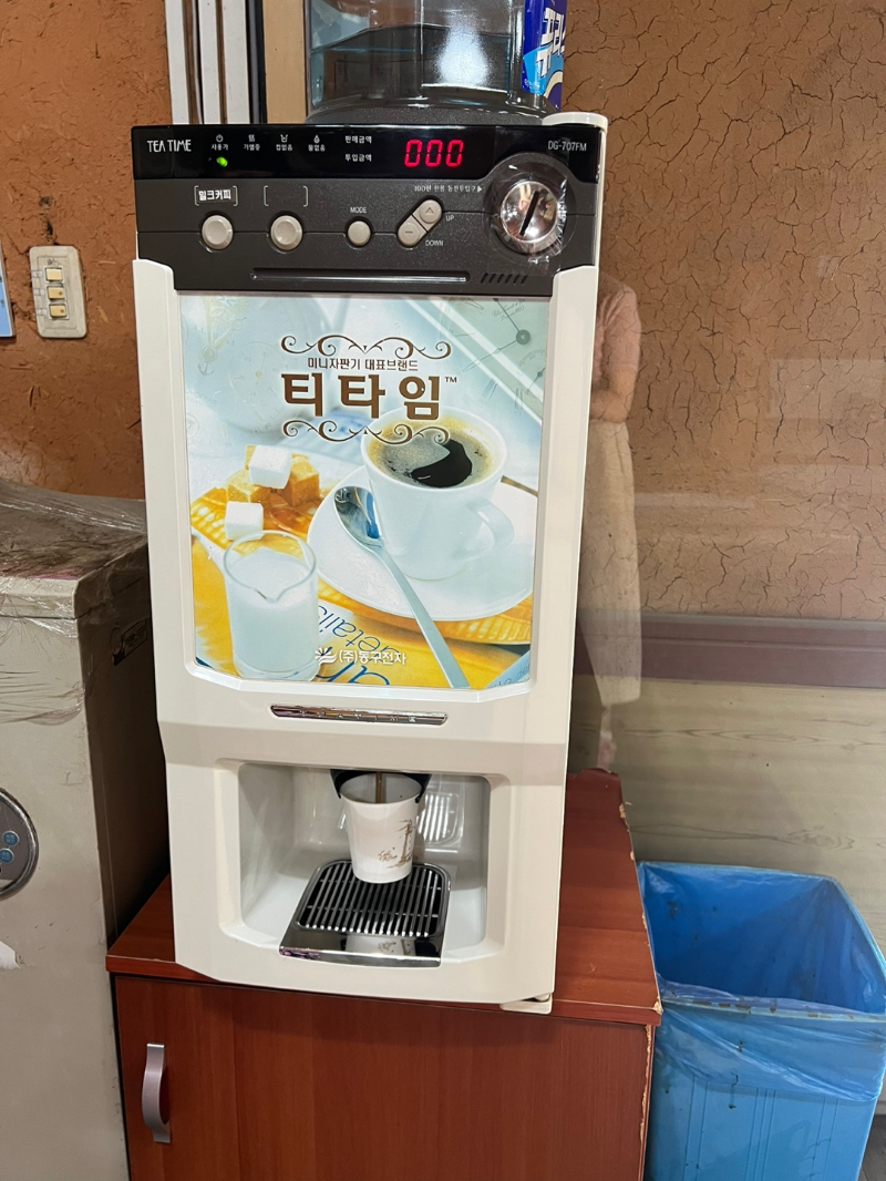 나오면서 밀크커피 자판기가 있어 한잔 뽑아 마셨어요.